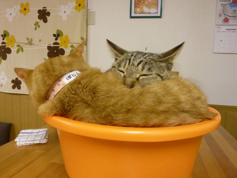 暖かさを求めて、なでしこさんとひまわりさんはひなたぼっこです